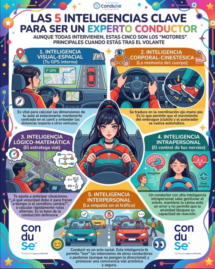 Entender cuál de estas inteligencias predomina en ti puede ser la clave para que tu curso de manejo sea un éxito rotundo y pierdas el miedo al tráfico de nuestra ciudad.